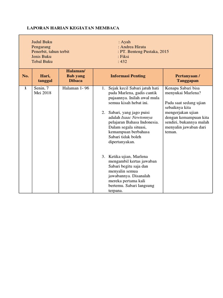 Laporan membaca buku non fiksi per bab. We did not find results for: Check spelling or type a new query. Maybe you would like to learn more about one of these?